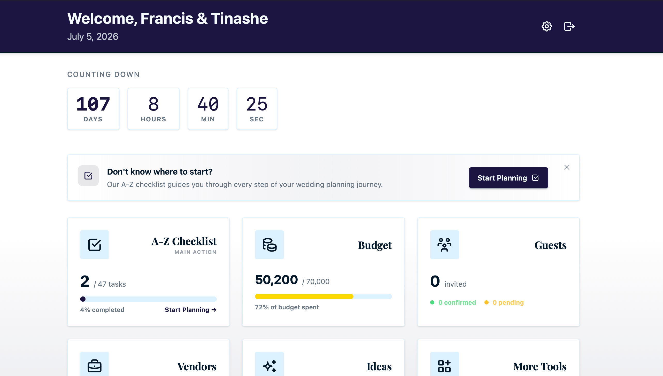 An wedding planning platform with budgeting tools, checklists and guest management.